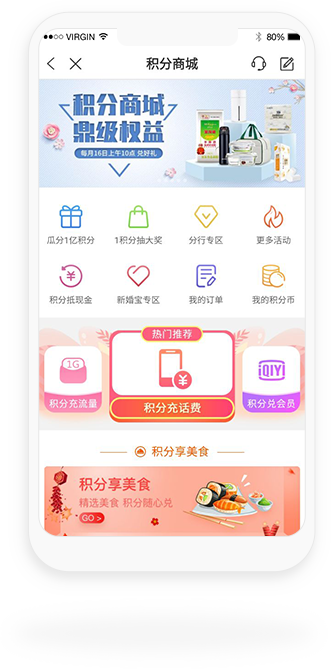 案例内容:为促活新老用户,橙积分为中原银行借记卡积分商城提供鼎级权益,引入海量品牌,搭配衣食住行等各类电子卡券商品,满足用户多样化需求,增强用户体验。