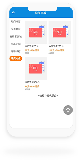 案例内容:橙积分为上海帘邦信息科技有限公司定制专属积分商城,企业配置自有商品并接入橙积分提供的话费权益。用户打开安帮客APP进入铜板商城,直接兑换心仪的权益产品。量身定制实现积分赋能,用户活跃度大幅提升。